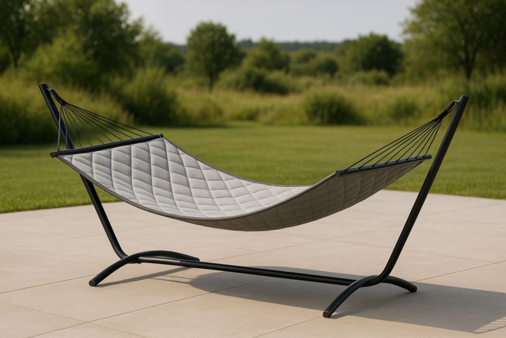 Canapé d'angle extérieur modulaire aluminium noir coussins gris